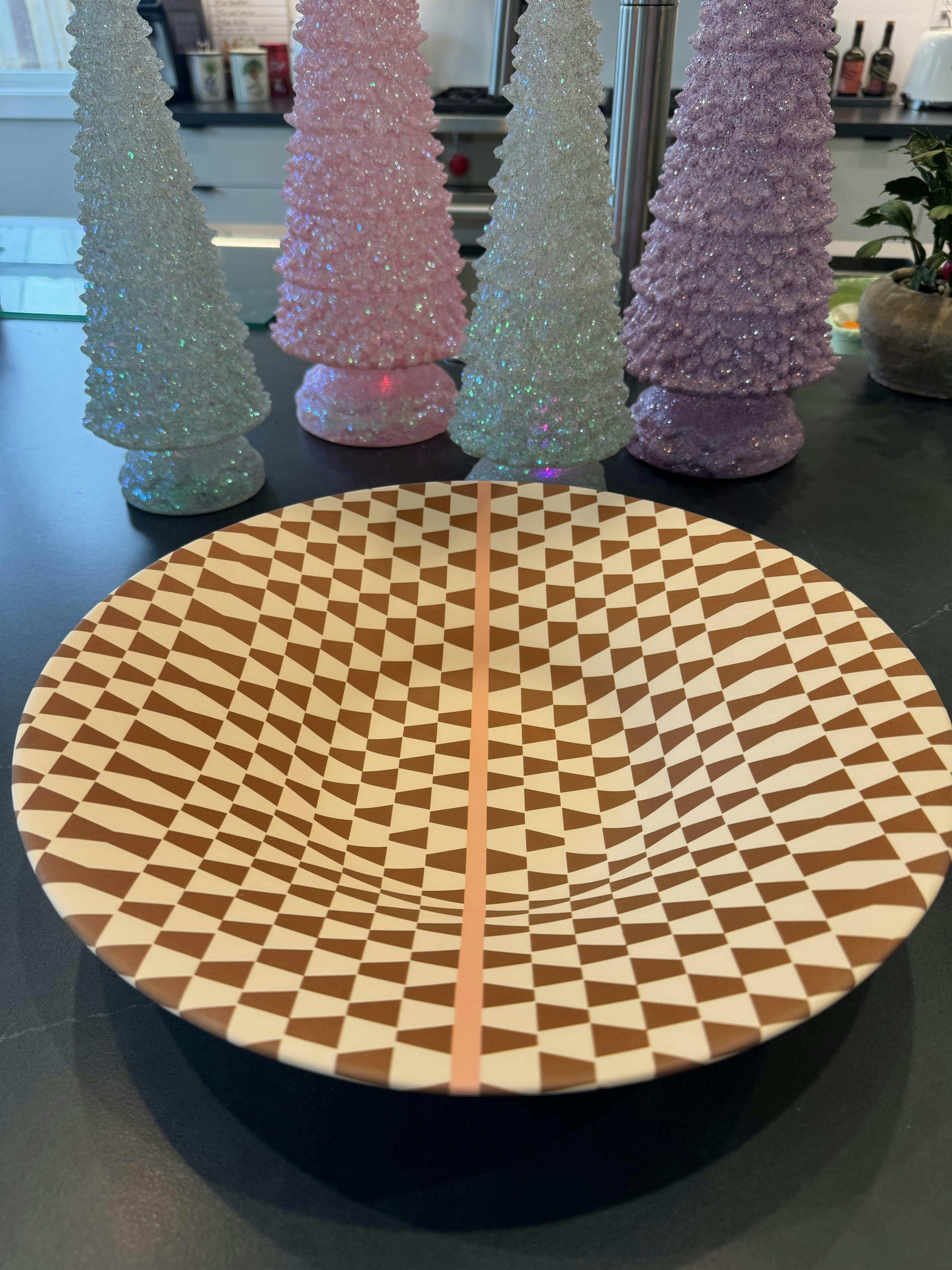 I absolutely adore this bowl. It’s lightweight and has a great quality.. I’ve incorporated it into my Christmas decor by adding some ornaments, and I also use it as a fruit bowl, just as suggested. It makes a stunning centerpiece on my bookshelf, sitting above my books. The pattern is one of my favorites—it reminds me of an LV design!