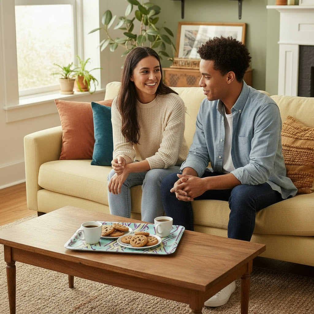 Designer Tray with a glossy scratchproof surface in different shapes for different usages, lap tray, desk tray, party catering. Extremely versatile tray. Beautiful and durable, made from hygienic, 0.13" thick scratch proof plastic. Built to be robust and long lasting. The glossy, wipe clean surface means they're incredibly low maintenance. Rinse and wipe down with a damp, soapy cloth for adequate maintenance.